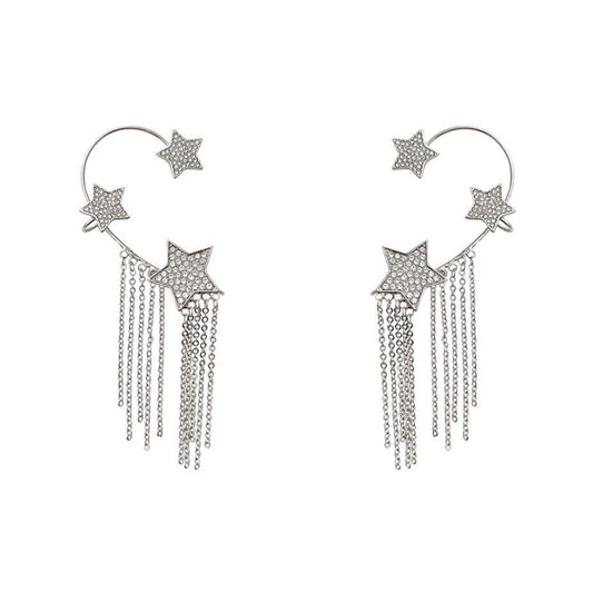 Elegant French Full Diamond Tassel Earrings