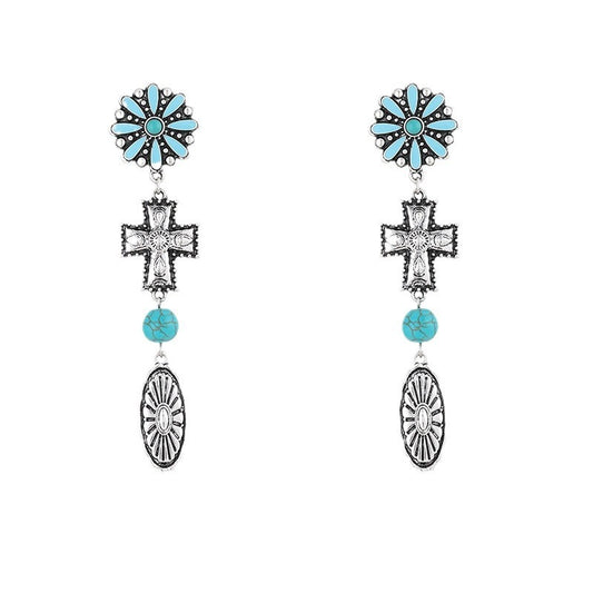 Personalized Turquoise Wax Cord Necklace with Vintage Cross Pendant