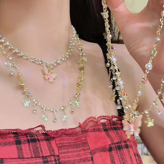 Double-Layer Pearl & Butterfly Pendant Necklace